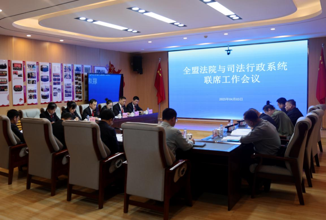 为贯彻落实盟委政法委员会2025年第2次全体(扩大)会议精神,进一步深化府院联动,切实提升法治政府建设水平,4月3日,兴安盟召开全盟法院与司法行政系统联席工作会议。盟法院党组副书记、副院长汪伟,盟司法局党组书记、局长刘刚出席会议并讲话,盟委政法委副书记明春宇,盟旗两级法院、司法局相关领导、科室负责人参加会议。