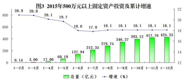 全年500万元以上固定资产投资425.33亿元,比上年增长18.1%。