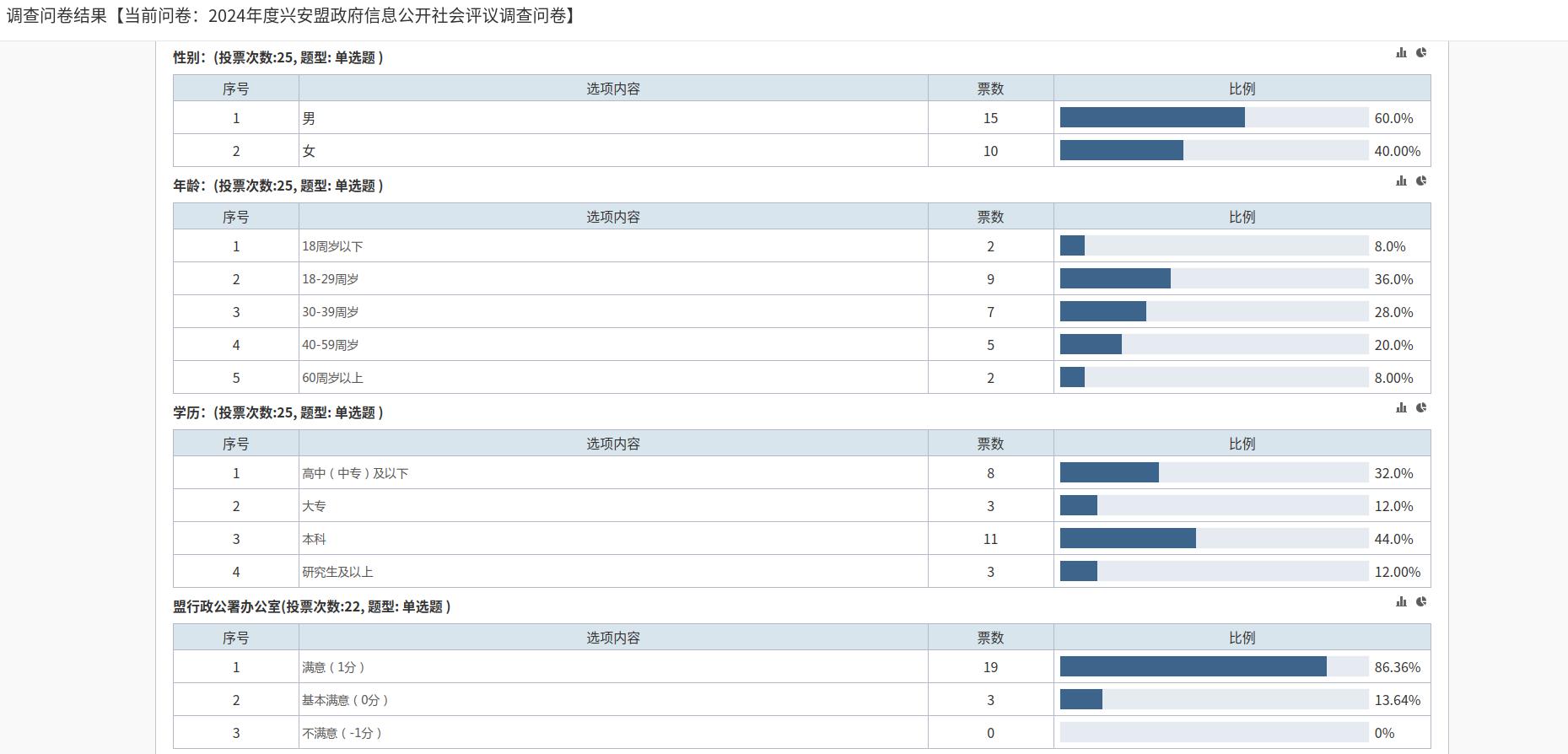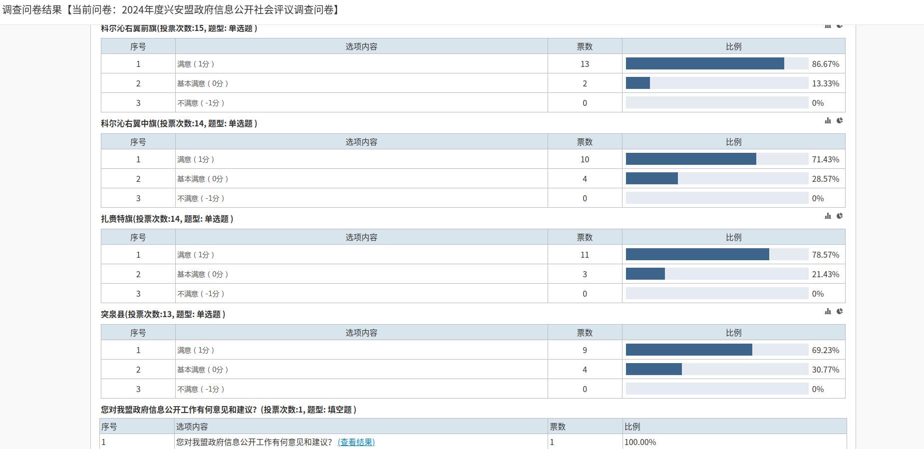 2024年度兴安盟政府信息公开社会评议调查问卷结果反馈
