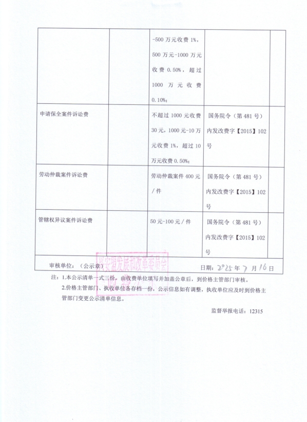 内蒙古自治区行政事业性收费公示清单(兴安盟中级人民法院.)