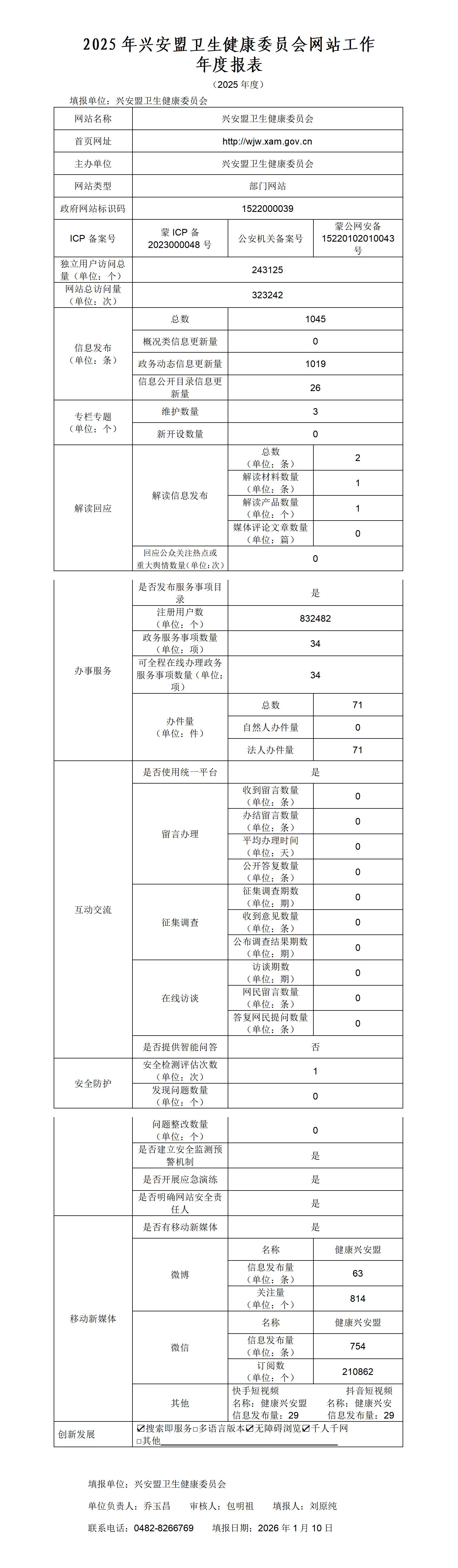 2025年兴安盟卫生健康委员会网站工作年度报表