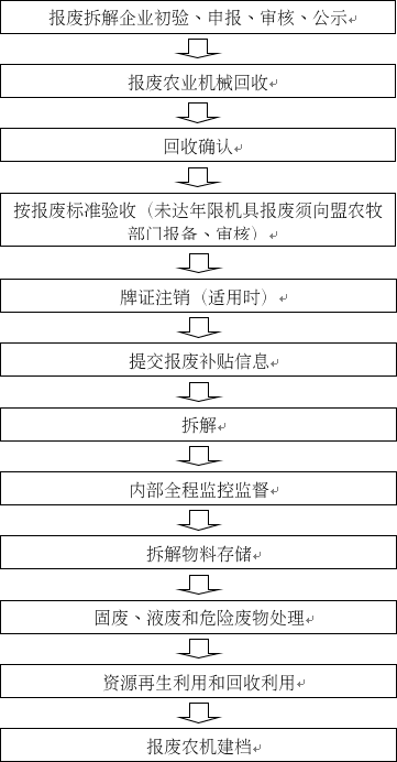 (二)回收拆解企业认定。各地农牧等有关部门要按照国家《农业机械安全监督管理条例》、《报废农业机械回收拆解技术规范》(NY/T2900—2022)标准要求,对“拆解企业场地面积不低于2000平方米”,以及消防、安全、环保和基础设施、技术装备等要求事项进行指导,对已批复公示的拆解企业进行改造提升;组织有意承担且具备资质的报废机动车回收拆解企业、依法具有农机回收拆解经营业务的其他企业或合作社,加快基础设施装备建设,及时进行初验、申报和区级认定,尤其是暂未落实农机回收拆解企业的旗县市地区,更要加大推进力度,务于今年年底前完成申报。各地要按照每个旗县市拆解企业2—3家总体数量标准,实事求是、因地制宜,科学布局建设,既要避免“一家独大”且无法完成本地区农机报废拆解任务,又要防止拆解企业资源浪费、因“吃不饱”而引起恶性竞争等问题发生。
