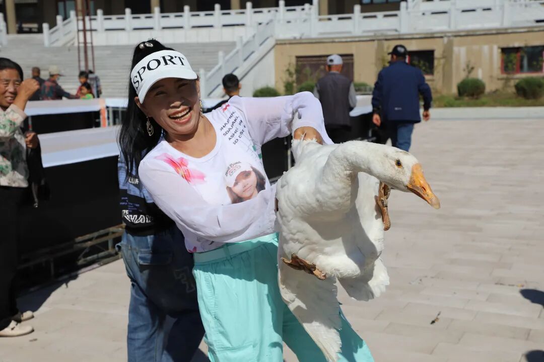 突泉县六户镇村民张玉凤说:“这丰收节举办得特别好,让人特别的开心,扭大秧歌的吃喝玩乐的小吃特别的丰富。我还不说别的,我开心的是我今天抓了一只大鹅。”在“游丰收”展示巡游区,农产品展示琳琅满目,场景打卡活动吸引了众多游客驻足参与。据悉,本次丰收节活动从早上9点持续到下午4点,吸引了数万名群众参与。活动不仅展现了突泉县农业丰收成果,也为推动乡村旅游、促进农旅融合发展提供了新动能。