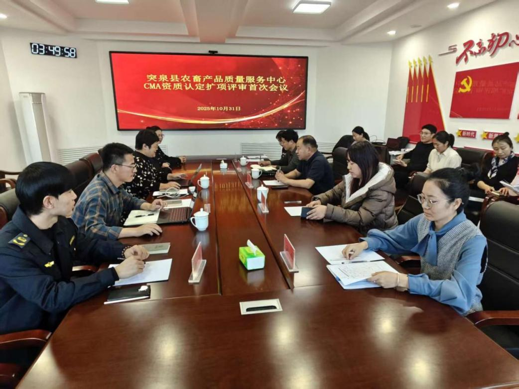 10月30日至11月3日,内蒙古自治区农牧厅农畜产品质量安全监管处与内蒙古自治区市场监督管理局委派评审专家组对突泉县农畜产品质量安全服务中心进行了检验检测机构扩项“双认证”现场评审。