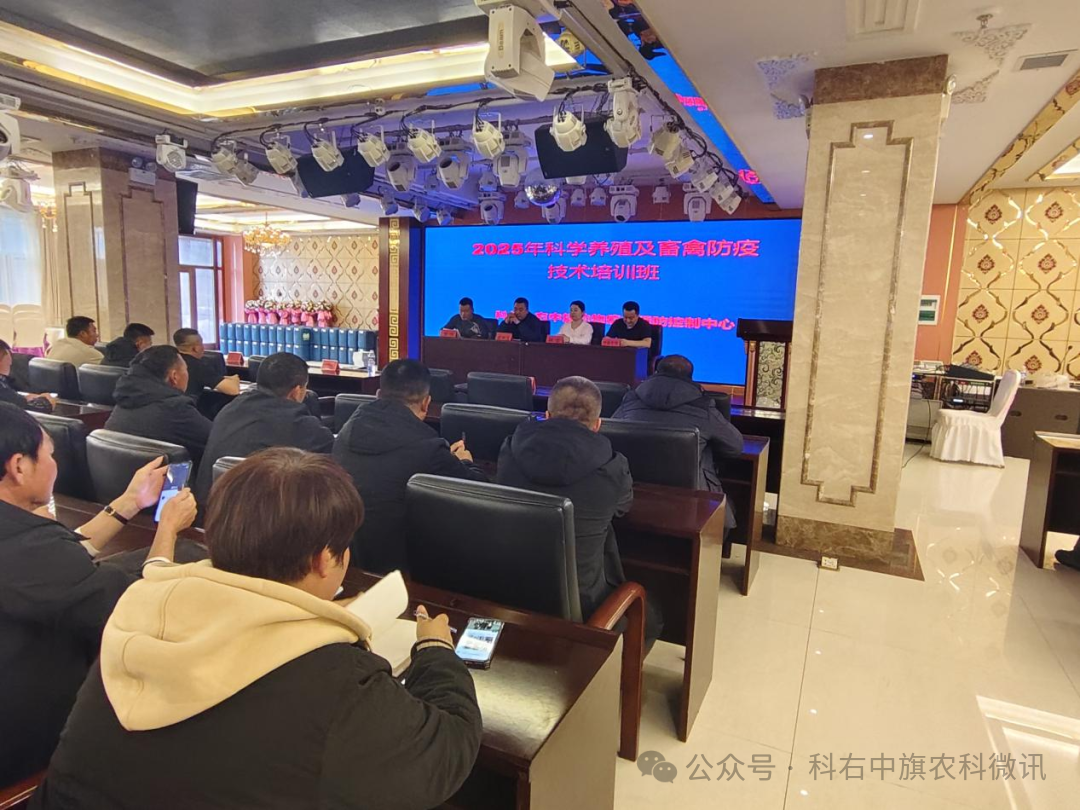 为深入贯彻落实科技特派员工作制度,以科技创新赋能乡村振兴,切实提升全旗农牧民畜禽防疫技术水平,强化基层畜禽防疫工作能力,11月20日科尔沁右翼中旗2025年畜禽防疫技术培训班顺利开班。本次培训是发挥科技特派员桥梁纽带作用、破解养殖生产防疫难题、夯实畜牧业高质量发展防疫根基的务实举措。