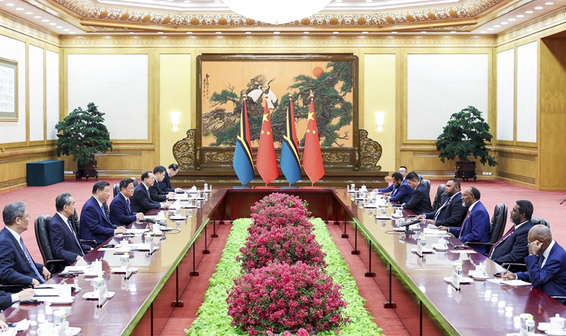 7月12日下午,国家主席习近平在北京人民大会堂会见来华进行正式访问的瓦努阿图总理萨尔维。