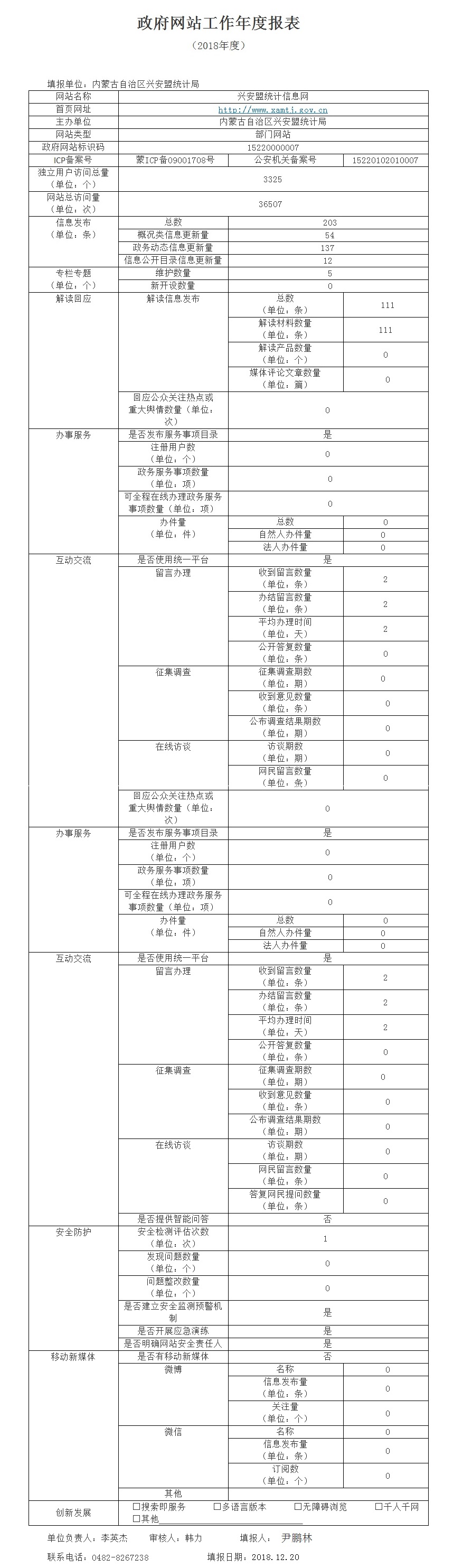 兴安盟统计局网站工作2018年度报表