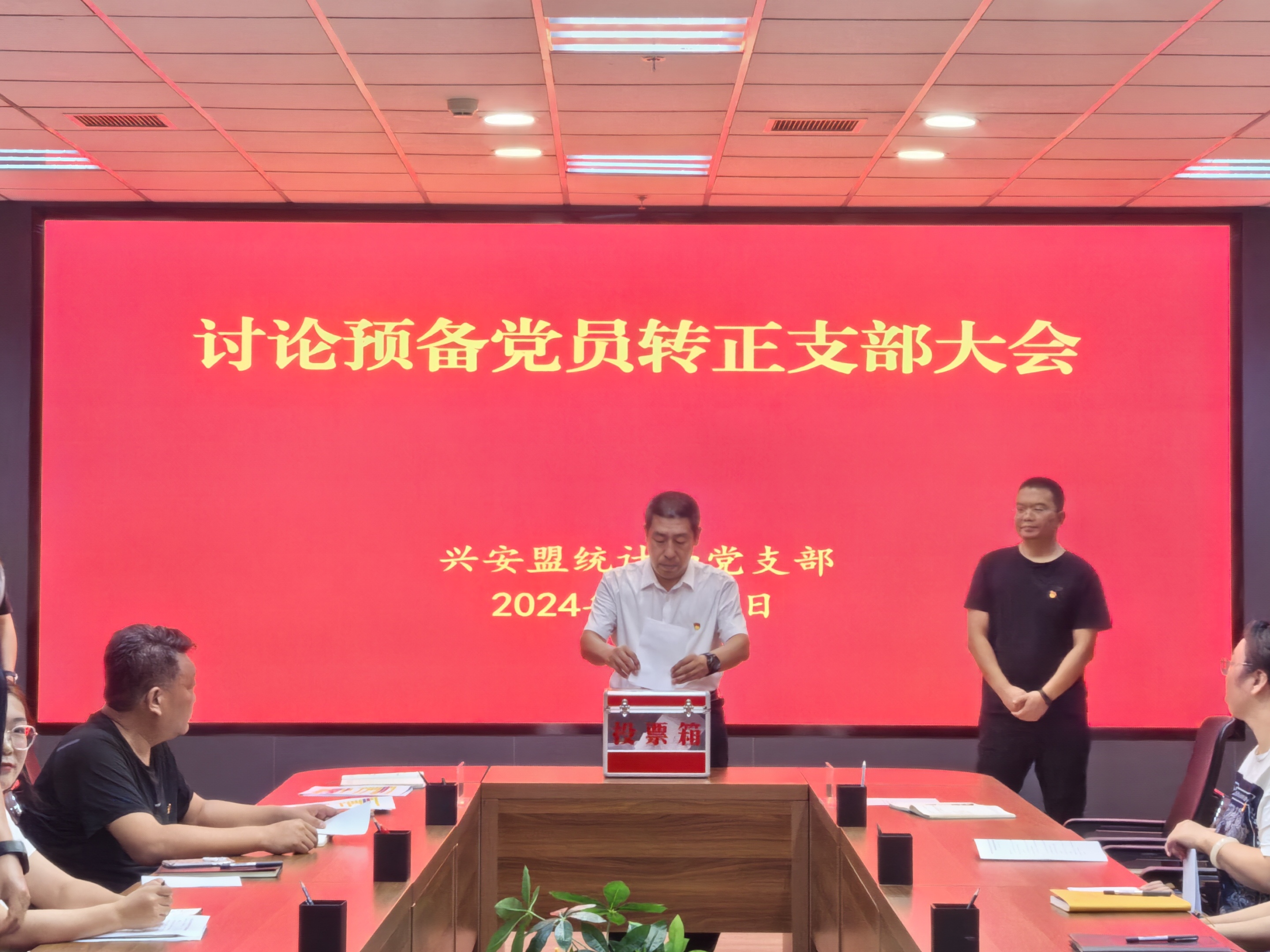 为贯彻落实党员的发展要求、进一步加强支部队伍建设,8月30日日午,兴安盟统计局党支部召开支部党员大会,研究讨论预备党员转正,支部全体党员参加会议。