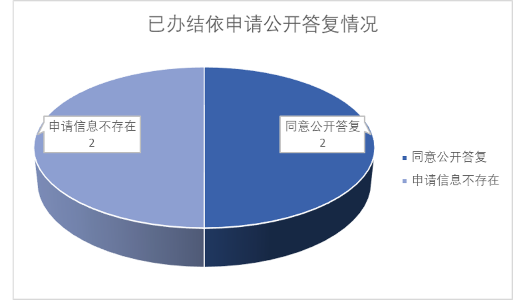 根据新条例完善依申请公开制度和公开指南,规范政府信息依申请公开的受理、审查、处理、答复等各环节的工作流程,做好合法性审查,确保答复时限和答复内容的依法依规。同时不断加强工作人员的培训和学习,切实增强业务能力。2019年,共收到信息公开申请4件,均按规定时间办结。已办结4件中,同意公开答复2件,申请信息不存在有2件。