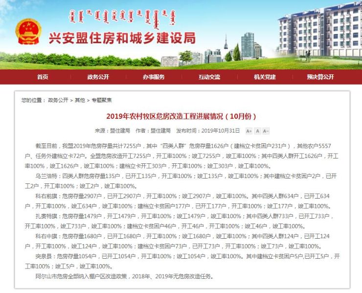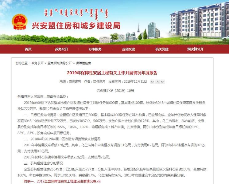 兴安盟住房和城乡建设局2019年政府信息公开工作年度报告