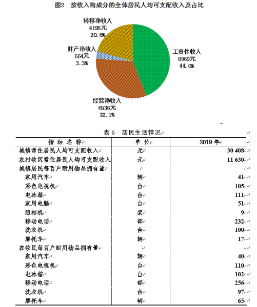 全年全盟居民人均可支配收入20364元,比上年增长9.6%;全盟居民人均消费支出13698元,增长9.8%。全年城镇常住居民人均可支配收入30408元,比上年增长7.2%,从主要收入构成看:工资性收入18633元,增长5.6%;经营净收入4991元,增长15.8%;财产净收入1143元,增长15.2%;转移净收入5641元,增长4.3%。城镇常住居民人均消费支出18412元,比上年增长7.4%;城镇居民家庭恩格尔系数(即居民家庭食品消费支出占家庭消费支出的比重)为29.62%,比上年下降0.42个百分点;城镇居民人均现住房建筑面积33.15平方米。全年农村牧区常住居民人均可支配收入11630元,比上年增长11.6%,从主要收入构成看:工资性收入1736元,增长9.4%;经营净收入7161元,增长13.6%;财产净收入592元,增长8.8%;转移净收入2141元,增长7.7%。农村牧区常住居民人均消费支出9587元,比上年增长11.8%;农村牧区居民家庭恩格尔系数为30.21%,比上年下降0.52个百分点;农村居民人均现住房建筑面积30.00平方米(由国家统计局兴安调查队提供)。
