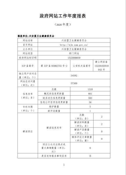 兴安盟卫生健康委员会网站工作年度报表(2020年度)