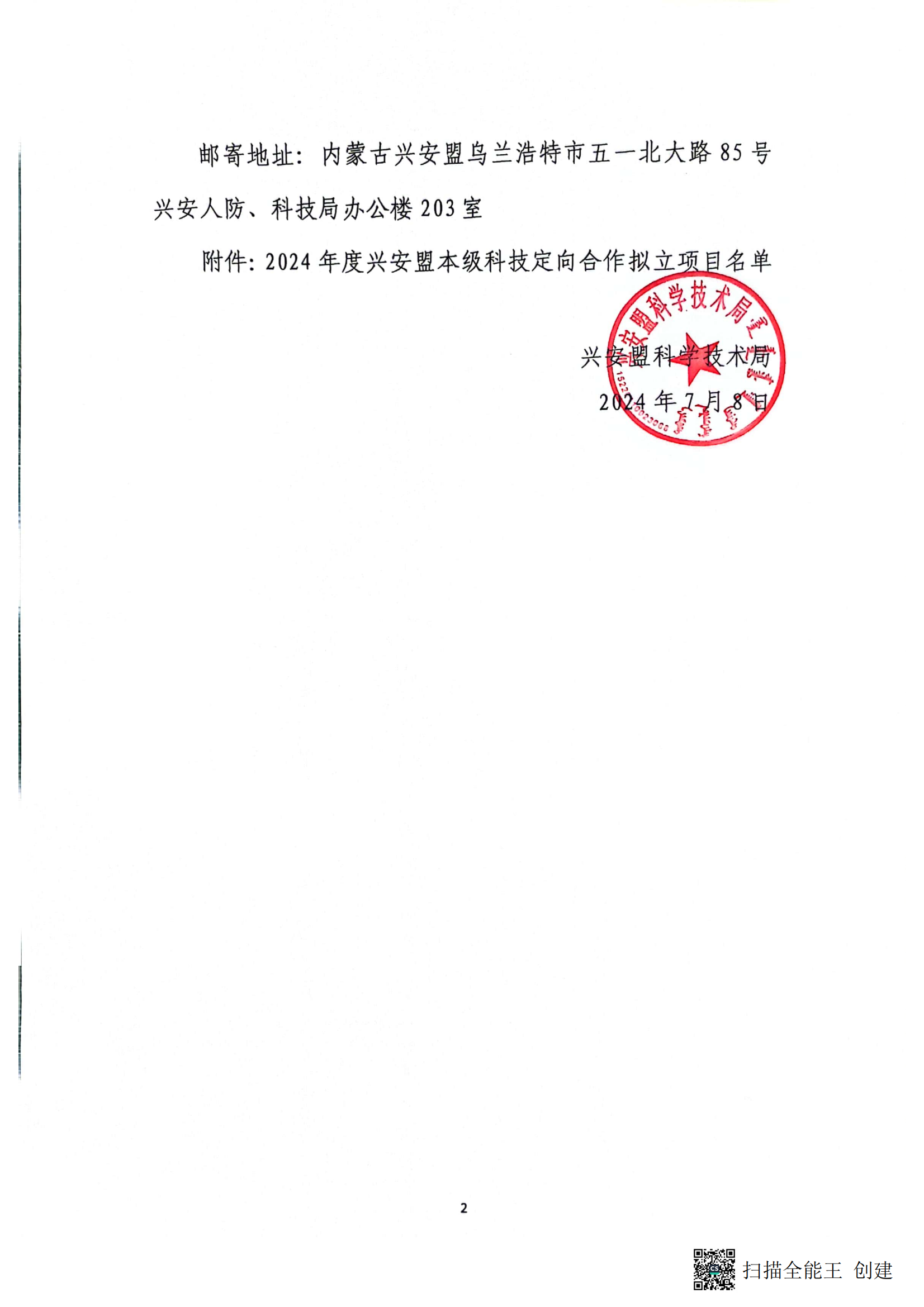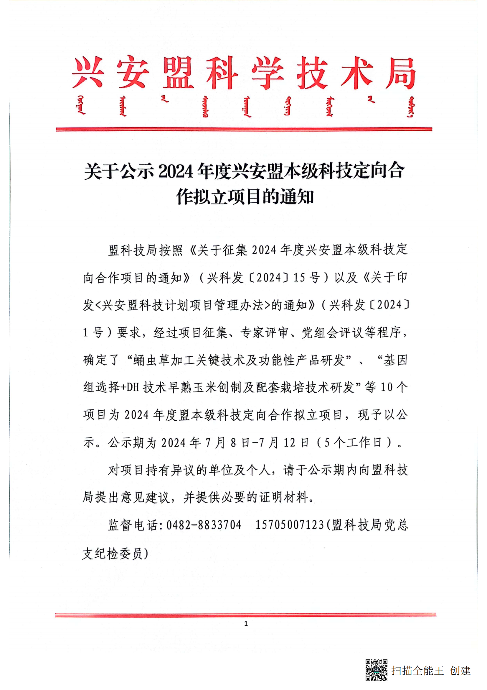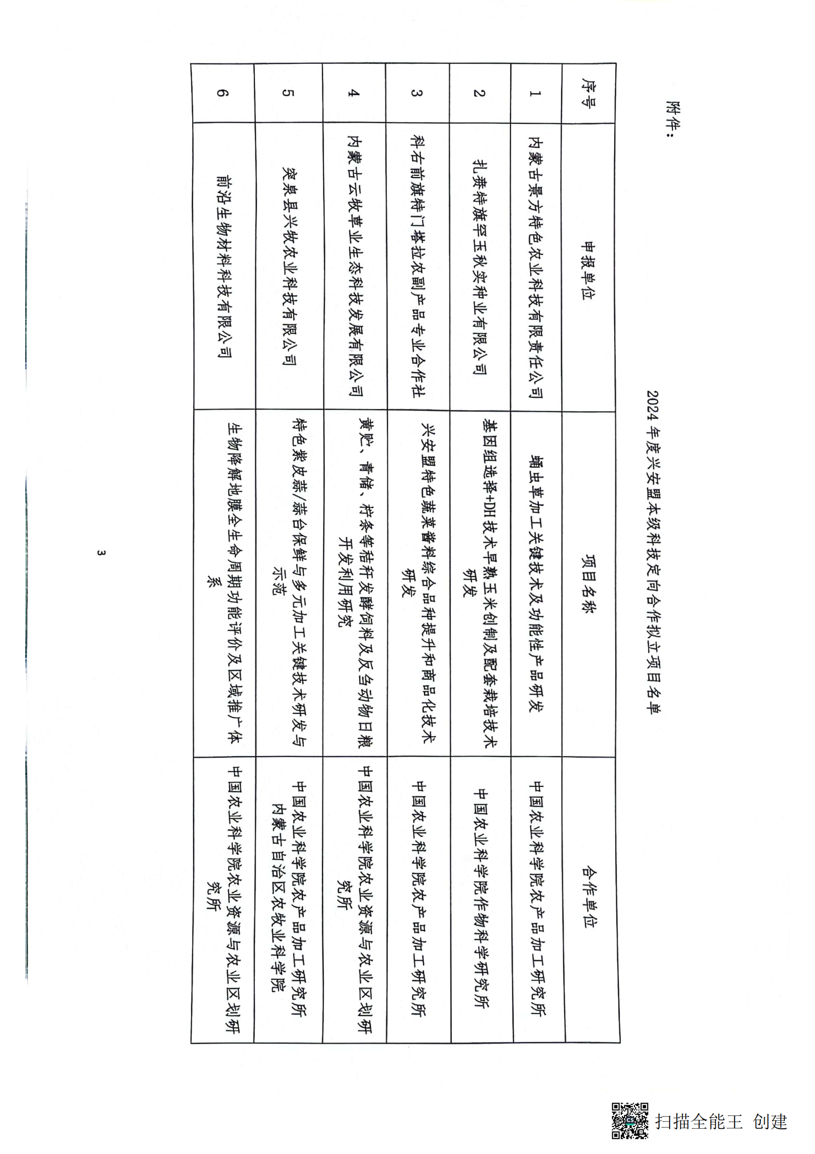 关于公示2024年度兴安盟本级科技定向合作拟立项目的通知