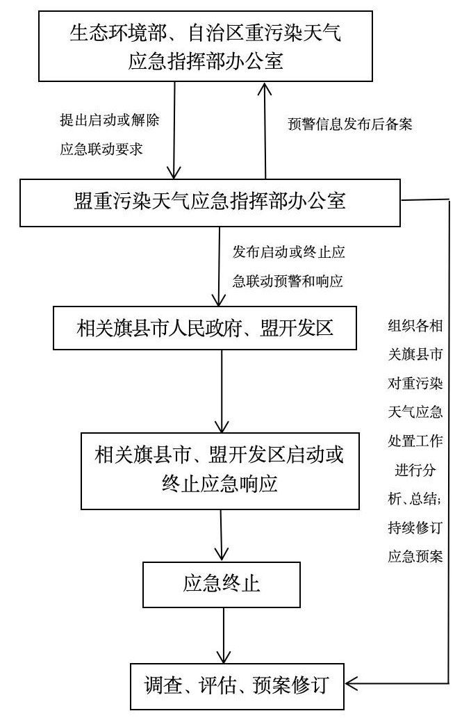 发布预警信息后,盟行署及各旗县市人民政府、盟开发区应当立即组织相关部门、企业采取相应级别的响应措施。包括但不限于以下措施: