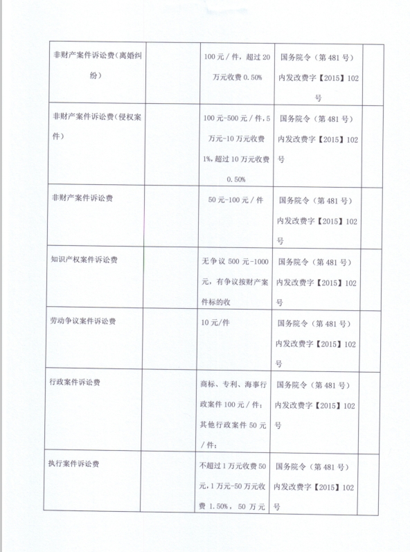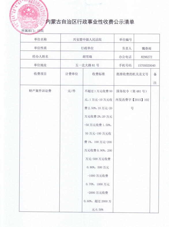 内蒙古自治区行政事业性收费公示清单(兴安盟中级人民法院.)