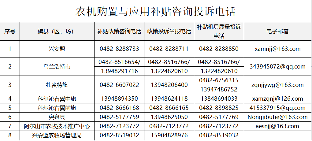 农机购置与应用补贴咨询投诉电话